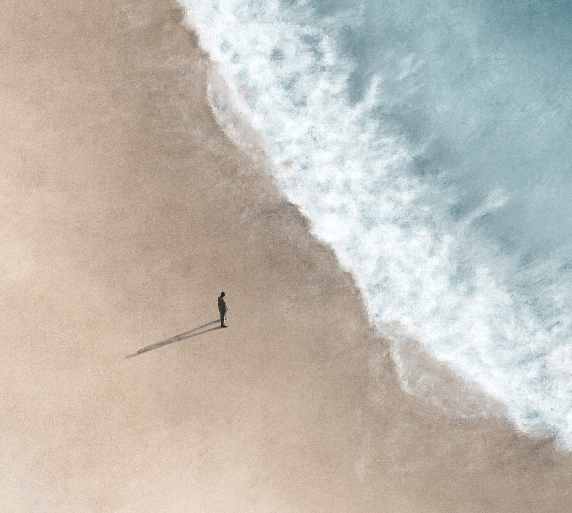 Der andere am Strand verbliebene Salzkristall scheint durchaus sehr interessiert, jedoch möchte er vorab die Erfahrungen seines Freundes begriffen haben. Er besteht darauf, erst ins Wasser zu gehen, wenn er voll und ganz verstanden hat, was seinem Freund passiert ist, nur dann könnte er entscheiden, ob er es ebenfalls ausprobieren möchte und ob diese Erfahrung seine Zeit wert sei. So bleibt er am Strand und klügelt und klügelt.